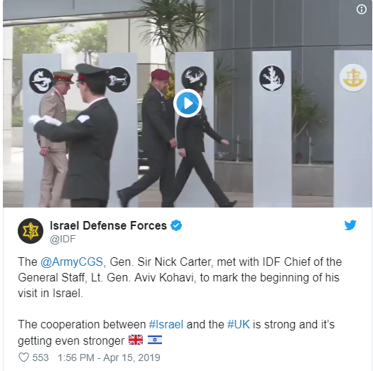 The Israel Defense Force’s Twitter account said: “The cooperation between Israel and the UK is strong and it’s getting even stronger”.
